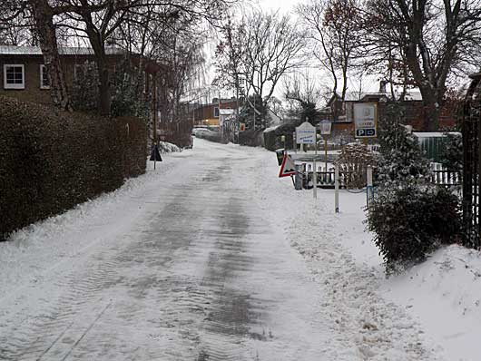 Jetzt passen wieder 2 Autos nebeneinander auf die Fahrbahn. Leider wurde durch diese Aktion die festgefahrene Schneedecke zu ein „Schneeloch“ Feld, so das höchstens mit 20 km/h ein Teil der Fischerstraße befahren werden kann.