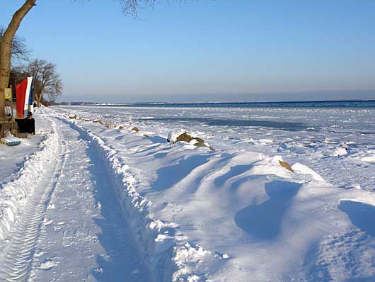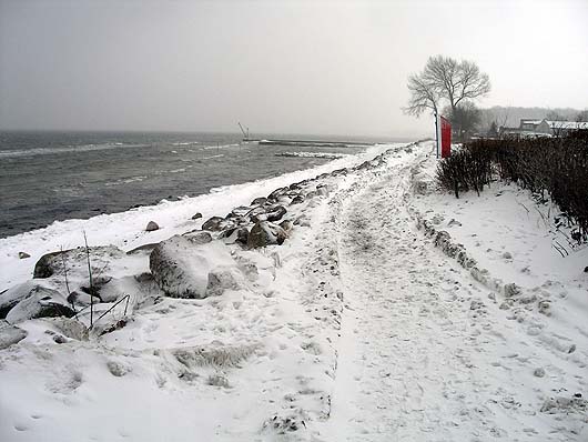 Die Schifffahrtszeichen der Ostsee wurden ein geholt, um zu verhindern das sie bei schweren Eisgang zerstört werden. Die gelben Reede-Tonnen für die erwarteten Containerschiffe sind auch verschwunden.