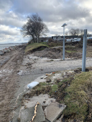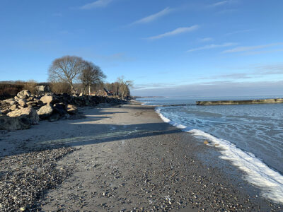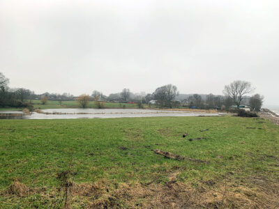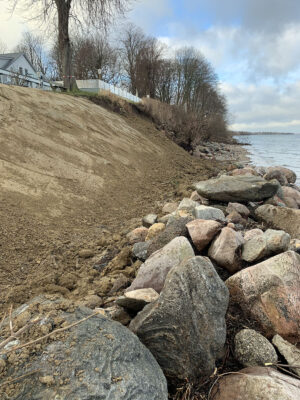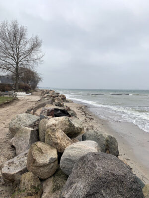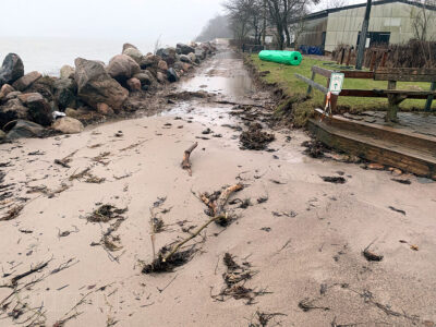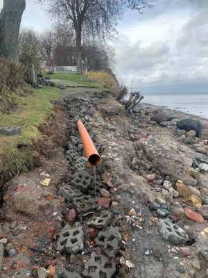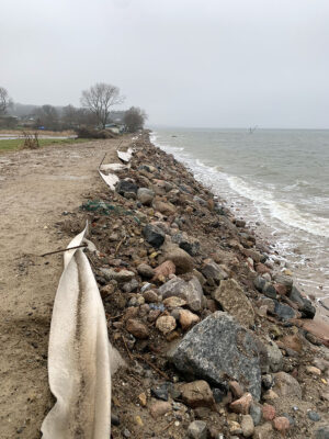 Der Wiederaufbau des Küstenschutzes ist wetterbedingt noch lange nicht abgeschlossen, aber hält zumindest den ‚normalen‘ Winterhochwasser stand.