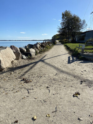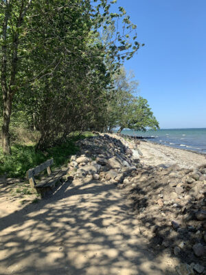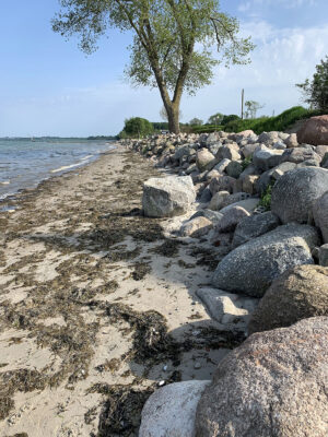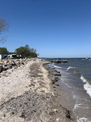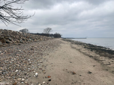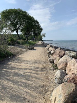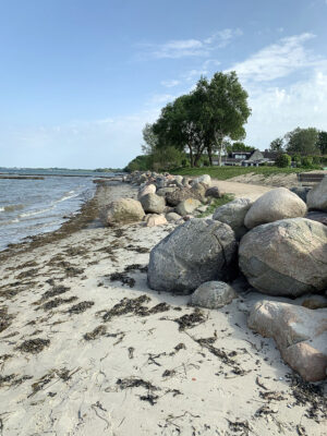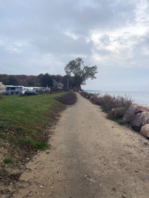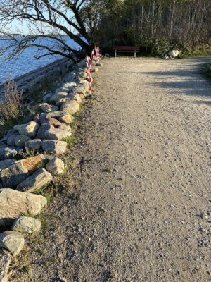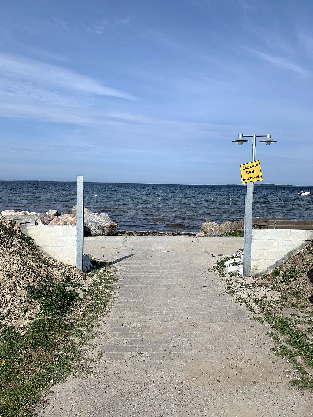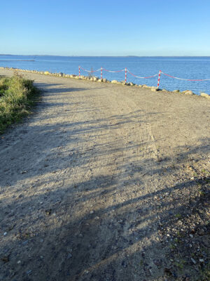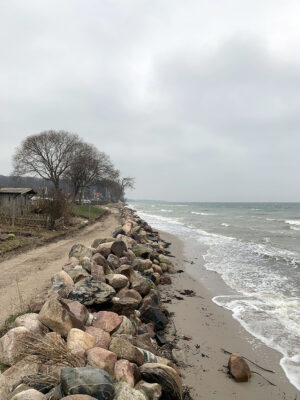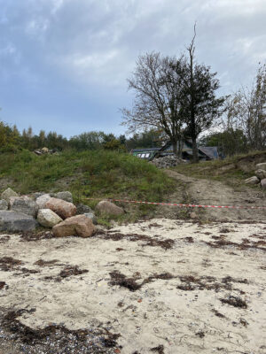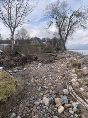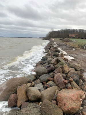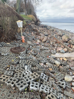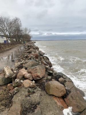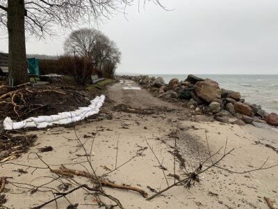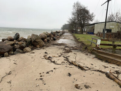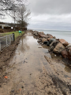 Am Ende der Fischerstraße zwischen den Steinwall ist kein Flutschott, ähnlich wie auf dem Campingplatz geplant.
