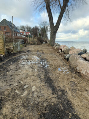 Auch nach 142 Tagen nach der zweitgrößten Jahrhundert Sturmflut vom 20.10.2023 ist der Küstenschutz leider noch nicht wieder komplett hergestellt. Der Strandweg /Ostseefahrradweg hat wetterbedingt noch keine neue feste Straßendecke. Alle hoffen, dass es in der nächsten Woche mit der Reparatur des Küstenschutzes weiter geht.